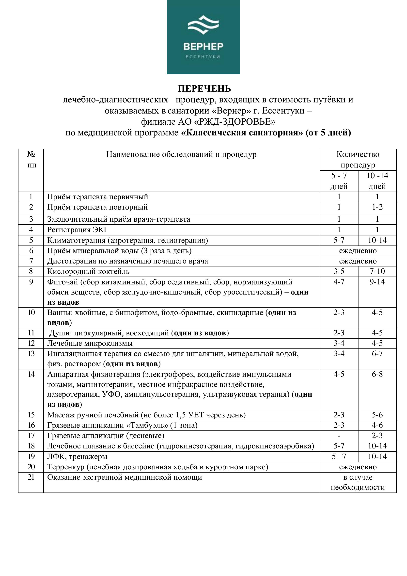 - лечебные и оздоровительные процедуры назначенные врачом в рамках программы