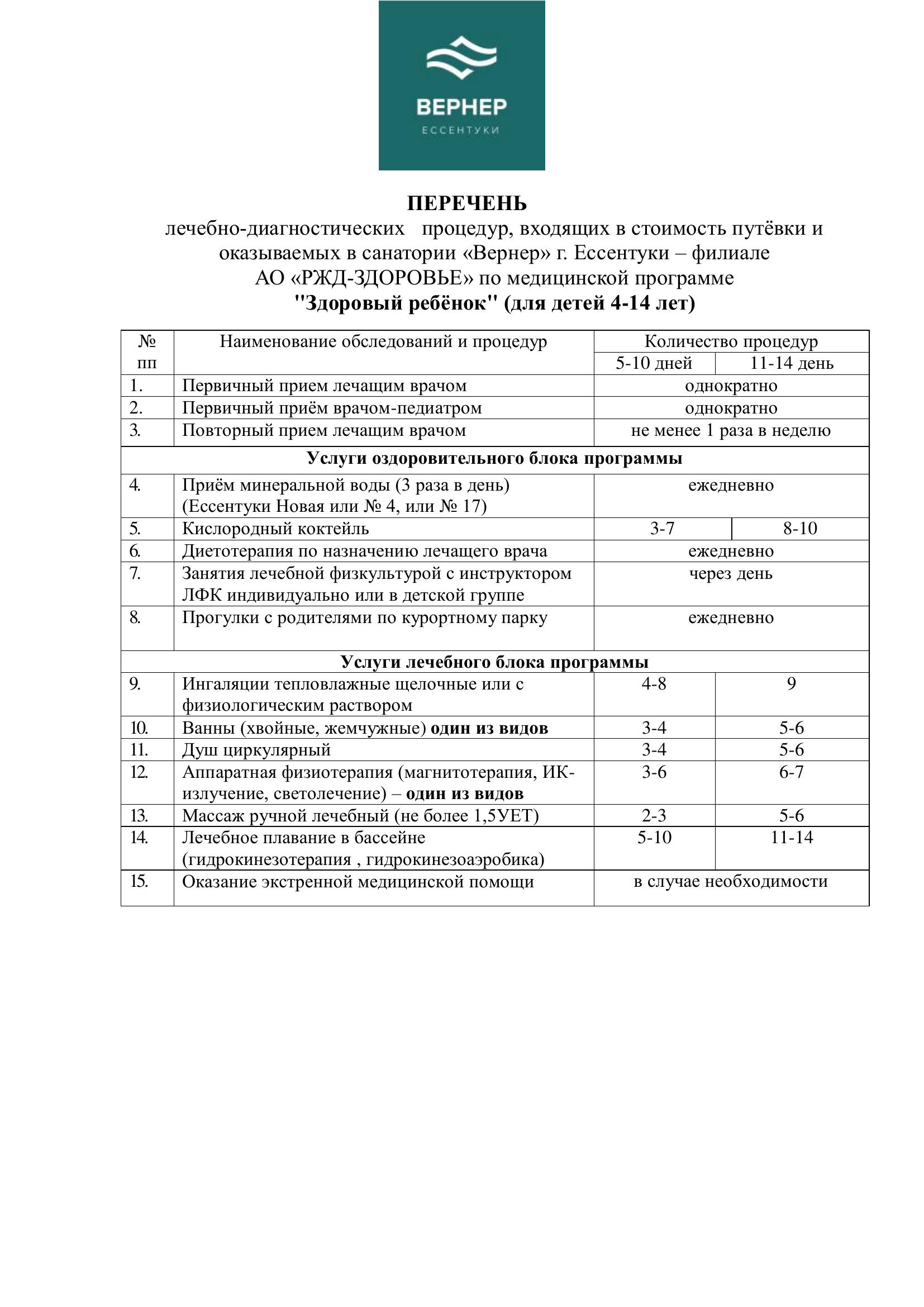 - лечебные и оздоровительные процедуры назначенные врачом в рамках программы